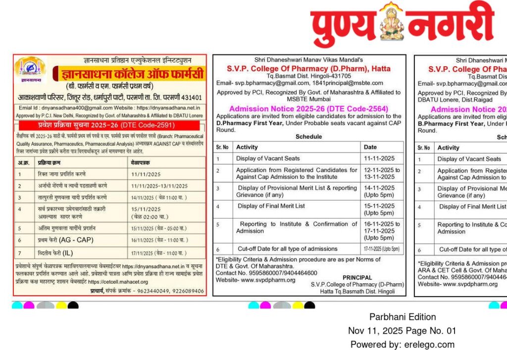 Admission notification 2025-26 B Pharm FY
